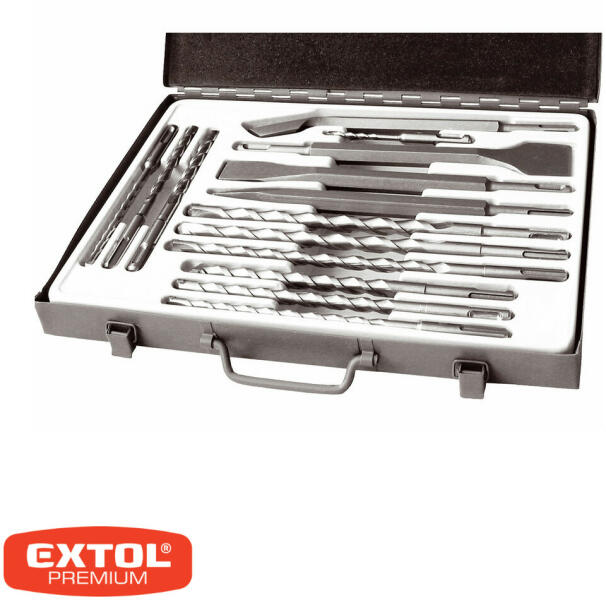 SDS-PLUS 2-élű fúrószár és véső készlet, 14 darabos Vésők: hegyes, lapos 20/40 mm, horony Kétélű fúrószárak: 5-6-8-10-12-14 mm Acél tárolódobozban 14 darabos készlet acél tárolódobozban Készlet tartalma: 5x110 mm 2-élű fúrószár 6x160 mm 2-élű fúrószár 8x160 mm 2-élű fúrószár 10x160 mm 2-élű fúrószár 8x210 mm 2-élű fúrószár 10x210 mm 2-élű fúrós