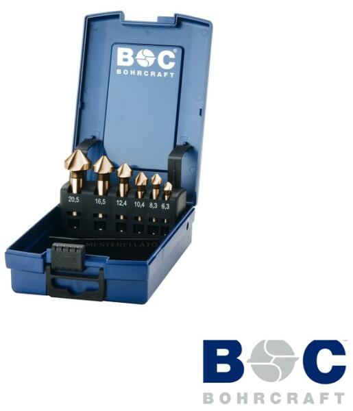 KS 6-K Co kúpos süllyesztő fémhez (Co 5 %) Három vágóéllel Hengeres befogás ABS műanyag tartó doboz DIN 335C Ötvözött, nagy teljesítményű gyorsacélból, 5% kobalttartalommal. C-forma, 90°-os kúpszög, köszörült, fényes felülettel. Három speciális kialakítású vágóél, rezgés és a sorjamentes süllyesztés. Alkalmas ötvözött és ötvözetlen acélhoz, rozsdamente