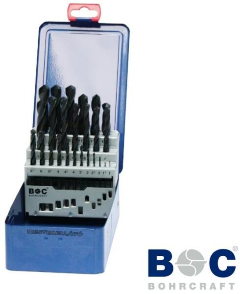 HSS-R M13 Metal-Box fémfúró készlet Hengeres befogás Fém tároló doboz DIN 338 Edzett, nagy teljesítményű gyorsacélból. 118°-os fúrócsúccsal. Görgőshengerelésű kétspirálú, két vágóélű, köszörült éllel, fekete foszfátozott felülettel. Spirálhorony a gyors forgácskihordás érdekében. Nagyfokú rugalmasság, csekély törésveszély, hosszú élettartam a robuszt