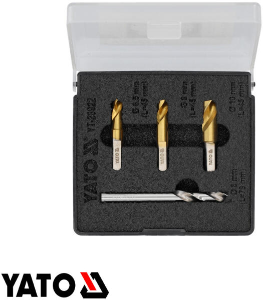 Ponthegesztés fúró készlet HSS, 4 részes Kobalt bevonat Átmérők: 6,5-8-10 mm Ponthegesztés fúró készlet HSS, 3 részes Kobalt bevonat Tárolódobozban Fúrószárak a készletben: ∅6,5x45 mm ∅8x45 mm ∅10x45 mm ∅8x79 mm