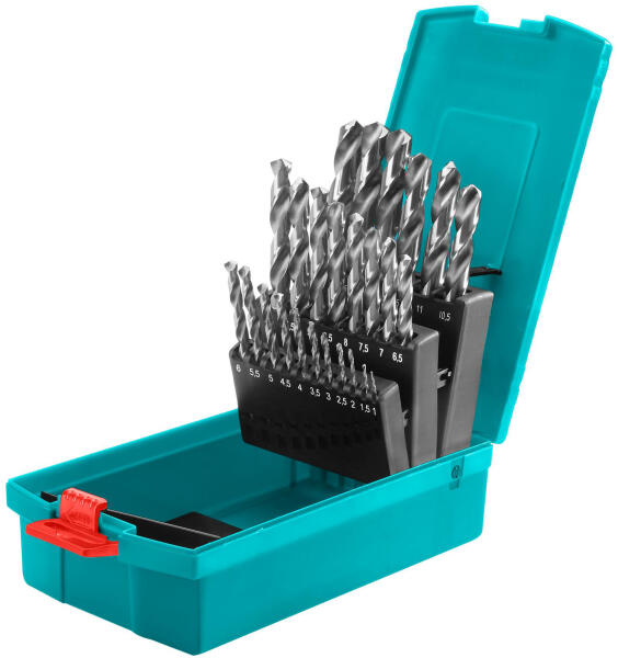 25 db HSS fúrószár készlet 1-13 mm / 0,5 mm/ INDUSTRIAL (TACSD0251) 25 darab HSS fúrószár készletünk széles választékban kínál fúrószárakat 1-13 mm méretben, mindegyik 0,5 mm különbséggel. A fúrószárak minősége BOSCH szintet üt, teljesen köszörült élekkel és 135°-os önközpontosító csúccsal rendelkeznek, mindezt kiváló minőségű M2 gyorsacélból. A készle