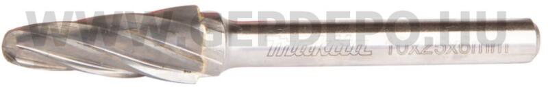 Makita keményfém kúpos kerek turbómaró színesfém fogazás - 10 x 25 x 6 mm Keményfém sorja a gyors, durva eltávolításhoz, a maró geometriájának csekély eltömődésének hajlamával. Színesfém anyagok és műanyagok felhasználási területei. Alkalmas minden szokásos egyenes csiszolóhoz, 6 mm-es szorítóhüvellyel. Anyaga: rozsdamentes keményfém (HM)Fejforma: kúpos kerek (