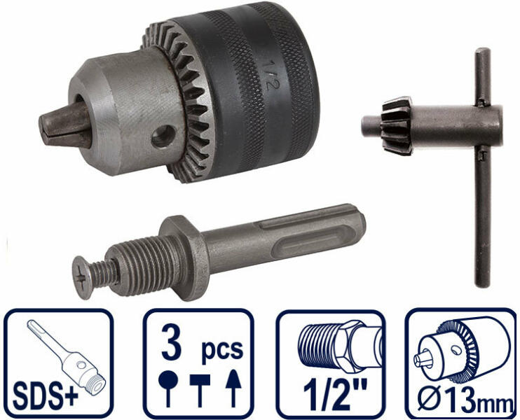 Tokmány fajtája: fogaskoszorús tokmány tokmány méret: 1,5mm - 10,0mm befogás: 3/8"x24 UNF kompatibilis gépek: 6412