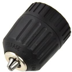 Pót-fúrótokmány 1.5 – 10 mm 3/8" gyorsrögzítő Gyorsbefogó fúrótokmány 1,5 – 10 mm-es átmérőjű fúrószárakhoz. Rögzítő menet 3/8". A gyorsbefogó fúrótokmány rögzíti a fúrószárat további rögzítő-szerszámok használata nélkül. Technikai paraméterek:Fúrószár átmérők: 1,5 – 10 mmSzerelőmenet: 3/8"Gyorsbefogó: tománySúly: 200 g