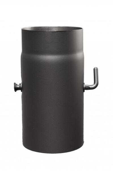 Fekete, festett, acéllemez füstcső. Alkalmas kandallókhoz, kályhákhoz, kazánokhoz. Kiváló erős füstcső, melyet bármelyik kandallóhoz szívesen ajánlunk. Átmérője:200 mm, teljes hossza: 250 mm. Az egyik vége szűkített a pontos csatlakozás érdekében. Lemezvastagság: 2mm. Beépített pillangószeleppel (huzatszabályzóval).