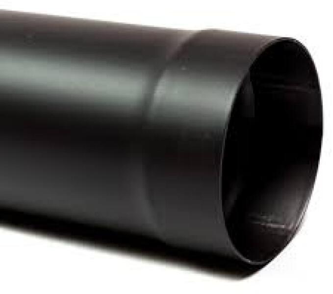 Saját gyártású fekete, festett acél füstcső, más néven kályhacső.