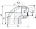 PPs/Alu ellenőrző könyök 80/125 mm 87° L1=184 mm L2=273 mm X1=120 mm X2= 90 mm