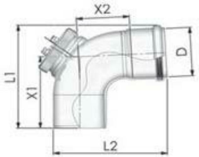 PPs ellenőrző könyök 87° 110mml1= 220 mm l2= 115 mm x1= 155 mm x2= 160 mm