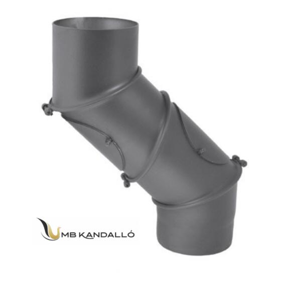 A DARCO márkájú állítható könyök 4 részből épül fel. A 3 nyitható-zárható rögzítő rész segítségével, a könyököt megfelelő szögbe állíthatjuk, így nem csupán 45 °-ban, hanem egy nagyobb szögtartományban mozoghatunk. Változata vastagfalú, mely SANOTHERM festékkel van le kezelve. Ennek köszönhetően, nem kell tartanunk az első begyújtások alkalmával tapaszta