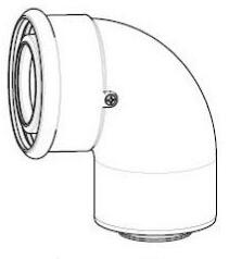 Égéstermék, füstgáz elvezetõ könyök idom kondenzációs gázkazánokhoz. Átm. : 80/15 mm, anyaga PPs/Alu.