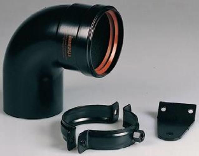 Ø 80 mm-es induló készlet akémény bekötéshez, 90°-os ívvel, rögzítő pánttal, tartólemezzel és csavarokkal