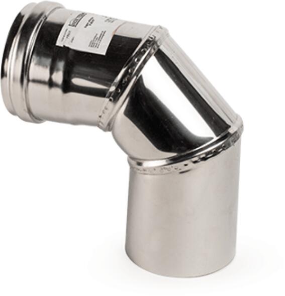 90°-os rozsdamentes pelletkályha füstcső könyök (80 mm) Rozsdamentes acél lemez füstcső könyök, fémszínű, 0,5 mm-es anyagvastagsággal, 80 mm-es belső átmérővel, hőálló szilikon tömítéssel.