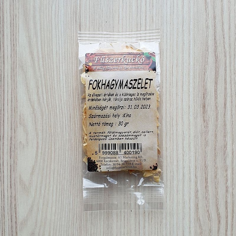 A fokhagyma szeletek használatával egyszerűen és gyorsan elkészítehti ételeit, hiszen nem kell a pucolással foglalkoznia. Ráadásul a szárított fokhagyma szeletek sokáig elálnak, így a fokhagyma tárolásával sem kell bajlódnia. A szárított fokhagyma szeletek földimogyorót, diót, zellert, mustármagot és szezámmagot is feldolgozó üzemben kerültek csomagolásra. Fűszerek,
