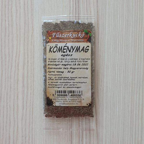 A köménymag a földön a legkedveltebb, és legelterjedtebb fűszerek közé tartozik. Hazánkban is igen kedvelt fűszer. Népies nevei a konyhakömény, és a régi kömény. Íze erős, fanyar, ánizsra emlékeztető, ezért más fűszerekkel ritkán kombinálják. Zsíros olajat, illóolajat, fehérjét tartalmaz. Köménymagot még kenyérbe, péksüteményekbe, sós süteményekbe is rakj