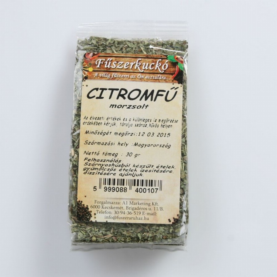 A citromfű a Kelet - Mediterránban és Dél Európában honos, a mentához hasonló alakú, illatos levelű fűszer és gyógynövény. Most a citromfű szárított, morzsolt változatát kínáljuk Önnek. Népies nevei: citromszagú melissza, orvosi citromfű, méhfű, mézfű, macskaméz, igaz nádrafű, mézelke A szárított morzsolt citromfű földimogyorót, diót, zellert, mustármagot