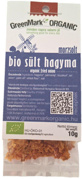 Greenmark Bio Sült Hagyma 10 gA sült hagyma nem hiányozhat a hot-dogokról, a hamburgerekből és a salát kiváló alapanyaga is, de önmagában is ízletes csipegetnivaló. Összetevők: hagyma*, pálmaolaj*, búzaliszt*, só**ellenőrzött ökológiai gazdálkodásból