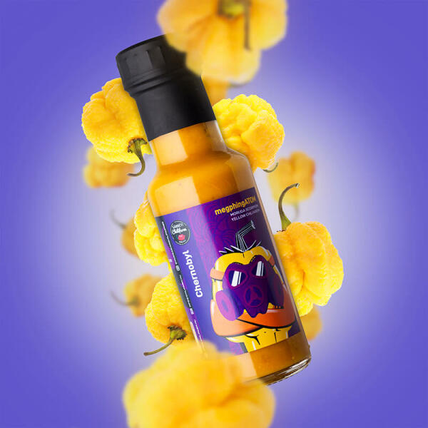 megphingATOM kifejezés nem kamu! Sárga színű rettenetesen csípős Trinidad Moruga Scorpion chiliből készült natúr chili krém. Ez a fajta chili citromsárga színűre érik be, vastag húsú és majdhogynem a Carolina Reaper chili erejével megegyező Scoville értékkel bír. A termék nem tartalmaz sót, cukrot, ecetet, paradicsomot, csak és kizárólag a Trinidad Moruga Scorpion Yello