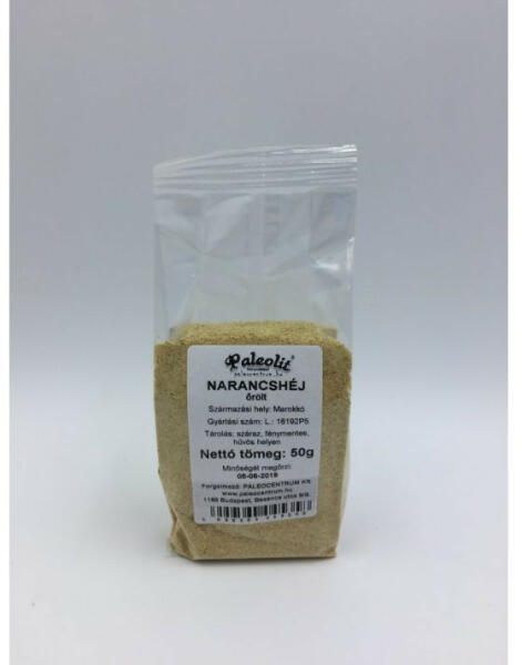 NARANCSHÉJ ŐRÖLT 50G PALEOLIT Desszertek, húsételek, pörköltek fűszerezéséhez, italok ízesítésére, díszítésre használható. Ásványi anyagokban gazdag. NARANCSHÉJ ŐRÖLT 50G PALEOLIT Ásványi anyagokban, rostban, A- és C-vitaminban gazdag, javítja az emésztést, felgyorsítja az anyagcserét, csökkenti a koleszterinszintet, enyhíti az influenzaszerű tüneteket, hörghur