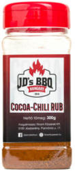 COCOA-CHILI, azaz kakaós-chilis fűszerkeverék Fűszeres, enyhén kakaós, egy leheletnyi csípősséggel turbózott rub. A só mellett a nevéből fakadóan kakaó és a kesernyés ízt ellensúlyozó cukor, valamint bors a három legfontosabb összetevő. Bár egy kevés cukor van a keverékben, nem kifejezetten édes, sokkal inkább pikáns, fűszeres rub. A kakaó természetes színe miatt a