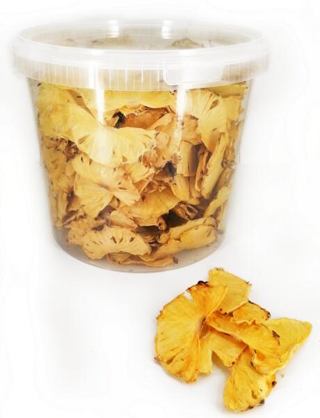 A 600 grammos kiszerelés a vendéglátóhelyek, éttermek és bárok nagy kedvence. Nem véletlenül, hiszen ekkora mennyiség mellett az sem okoz problémát, ha a vendégek közül mindenki valami trópusi hangulatú italra vágyik. A szárított ananász boldogan merül alá egy gin tonikban, de természetesen más koktélokhoz – például egy krémes Piña coladához – is jó választás.
