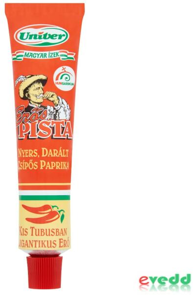 Termékleírás Jellemzők Hungarikum, Kis tubusban, gigantikus erő Előírt terméknév Nyers, darált csípős paprika Összetevők Nyers erős fűszerpaprika darálmány (87%), Étkezési só, Sűrítőanyag (xantángumi), Étkezési sav (citromsav), Tartósítószer (kálium-szorbát) Tápértékre vonatkozó információk 100 g termékben Energia 170 kJ / 41 kcalZsír 2,2 gamelyből telítet