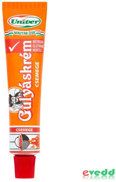 Gulyáskrém Termékleírás Jellemzők Nátrium-glutamát mentes Előírt terméknév Gulyáskrém Összetevők Paprikakrém (nyers édes fűszerpaprika, pritaminpaprika, étkezési só, módosított keményítő, sűrítőanyag: xantángumi, étkezési sav: citromsav, tartósítószer: kálium-szorbát), Sűrített paradicsom, Vöröshagymakrém (vöröshagyma, étkezési só, finomított napraf