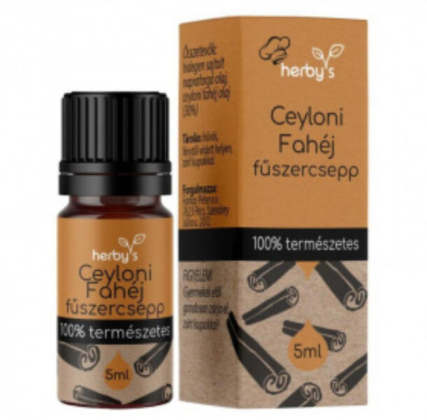 Herby's ceyloni fahéj fűszercsepp A Ceyloni Fahéj fűszercsepp esszenciáját a friss, ceyloni fahéj vízgőzdesztillációval kinyert illóolaja adja. Rendkívül alacsony kumarin tartalma miatt kedvezőbb élettani hatással bír, mint a cassia fahéj! A könnyebb konyhai felhasználás miatt hidegen sajtolt napraforgó olajjal van hígítva. Desszertek és egzotikus ételek kötelező kieg