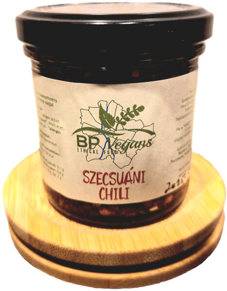 Fűszeres VEGÁN paprikakészítmény hidegen sajtolt növényi olajjal. Kézműves készítmény. Gluténmentes, nem tartalmaz mesterséges tartósítószert. BP VEGANS SZECSUÁNI CHILI 150 G Fűszeres VEGÁN paprikakészítmény hidegen sajtolt növényi olajjal. Kézműves készítmény. Gluténmentes, nem tartalmaz mesterséges tartósítószert. Összetevők: szárított chilikeverék, hidege