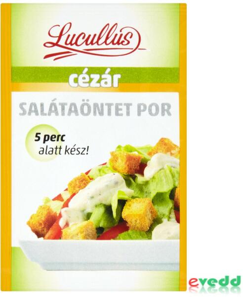 Termékleírás Jellemzők 5 perc alatt kész! Előírt terméknév Cézár salátaöntet por Összetevők Tengeri só, Kristálycukor, Módosított keményítő, Balzsamecet por (maltodextrin, balzsamecet), Inulin, Szárított zöldségek (vöröshagyma, fokhagyma, metélőhagyma), Fűszerek (őrölt mustármag, tört tarkabors keverék (feketebors, fehérbors, zöldbors, rózsabors)), Fűszerkiv