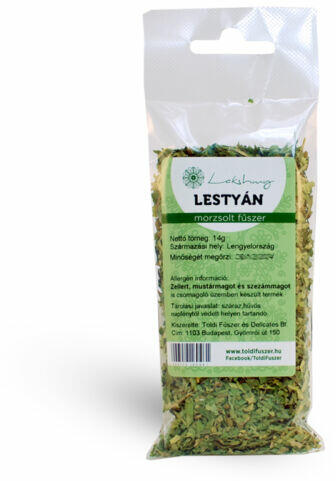 Lakshmy lestyán morzsolt 14g A lestyán ősrégi magyar fűszer, ízesíthetünk vele leveseket, salátákat, ételeket és italokat, vagy eceteket. Megjelenésében és aromáiban is hasonlít a petrezselyemhez. A Lakshmy lestyán morzsolt előnyei A lestyánt többféle ételhez, salátához vagy italhoz hozzáadhatjuk, hogy jellegzetes ízével gazdagítsa azokat, jó hatással is rendelkezik,
