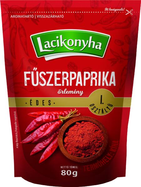 Jellemzők 100% magyar paprikából, Magas minőségi osztály: I. osztály, Kizárólag magyar termelőktől származó fűszerpaprika, Népszerű íz minden generációnak, Kizárólag bizonyított beszállítóktól Termék információk A Lacikonyhánál mi nagy hangsúlyt fektetünk arra, hogy minőségi, harmonikus ízvilágú, élénkpiros fűszerpaprikát tegyünk minden tasakba, hogy Ön