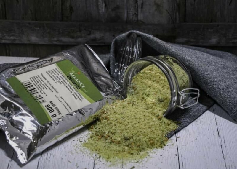 Szárított fűszerkeverék levesek, mártások, sültek ízesítéséhez, megújult receptúrával, min. 45% zöldségtartalommal és adalékanyagok nélkül! Nettó tömeg: 500 g Összetevők: 48% étkezési só, 45% szárított zöldségek változó arányban (sárgarépa, paszternák, petrezselyemzöld, vöröshagyma, fokhagyma, kurkuma, póréhagyma), burgonyakeményítő, cukor Származási
