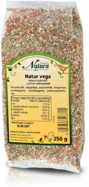 Mit érdemes tudni róla? Vegán Szójamentes Kizárólag természetes összetevőket tartalmaz Hozzáadott cukormentes Adalékmentes Felhasználás: 1 liter vagy 1 kg ételhez 1 evőkanál keverék javasolt. Összetevő k: sárgarépa, paszternák, burgonya, póréhagyma, vöröshagyma, petrezselyemlevél Származási hely: Magyarország