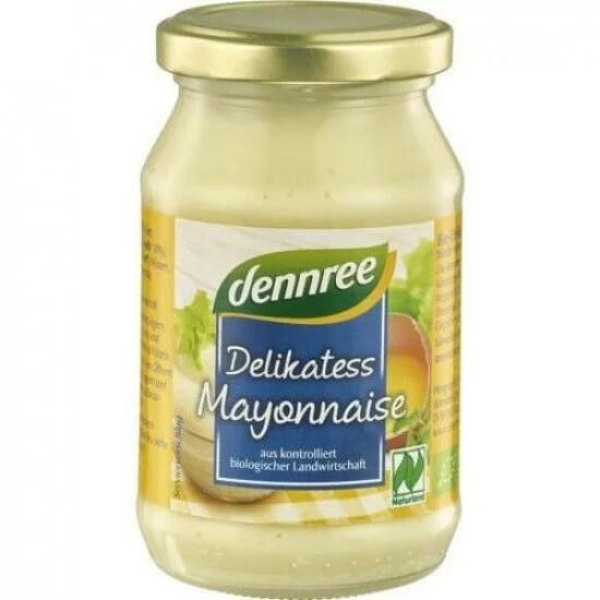 Dennree Bio Delikát Majonéz Bio delikát majonéz, tanúsított ökológiai mezőgazdaságból származó alapanyagokból, tradícionális receptúra alapján készült. Tápanyagtartalom 100g-ban: Energia: 3120 kJ / 758 kcal Zsír: 83 g ebből telített zsírsav: 9,5 g Szénhidrát: 2 g ebből cukor: 2 g Fehérje: 1,4 g Só: 1 gFelnyitás után hűtve tároljuk és lehetőleg hamar használjuk