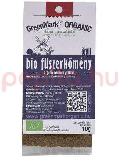 BIO GREENMARK ŐRÖLT FŰSZERKÖMÉNY 10GBIO FŰSZERKÖMÉNY ŐRÖLTNemcsak jellegzetes íze miatt érdemes fogyasztani, hanem azért is, mert rendkívül jó hatással van a szervezetre. A kömény az egyik legjobb olyan fűszernövény, amelyet az emésztés javítására használhatunk. Az "egyszerű" hasfájástól kezdve, a hasmenésen keresztül, a fokozott gázképződésen át a hányinger