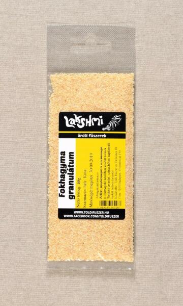 Fokhagymából, szárítással és szemcsésítéssel készített termék, amely megkönnyíti a konyhai munkát. Ízében, illatában és felhasználásában megegyezik a friss fokhagymával. Származási hely : Kína FONTOS! A termék zellert, mustármagot és szezámmagot is csomagoló üzemben készült!