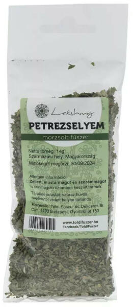 A petrezselyem a leggyakoribb zöldfűszerünk. Érdemes csak a főzés végén az ételhez adni, különben teljesen elveszíti az aromáit. LAKSHMY PETREZSELYEM MORZSOLT 14G A petrezselyem a leggyakoribb zöldfűszerünk. Érdemes csak a főzés végén az ételhez adni, különben teljesen elveszíti az aromáit. Enyhén csípős íze és egyedi illata jól illik a ragukhoz, levesekhez, zöldbo