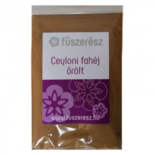 20 g-os őrölt ceyloni fahéj; Fűszerész termék az egészséges élelmiszerek kedvelőinek. Fűszerként hazánkban két féle fahéjjal találkozhatunk, az egyik a kínai fahéjfa (cinnamomum cassia, c. aromaticum) a másik a drágább, ceyloni fahéjfa (cinnamomum zeylanicum, cinnamomum verum) A két fából származó fűszerek tulajdonságai eltérnek egymástól: illatukban, kéregdarabok