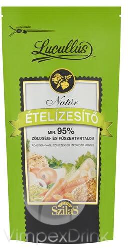 Szárított fűszerkeverék levesek, mártások, sültek ízesítéséhez, megújult receptúrával, min. 45% zöldségtartalommal és adalékanyagok nélkül! Nettó tömeg: 1000 g Összetevők: 48% étkezési só, 45% szárított zöldségek változó arányban (sárgarépa, paszternák, petrezselyemzöld, vöröshagyma, fokhagyma, kurkuma, póréhagyma), burgonyakeményítő, cukor Származási