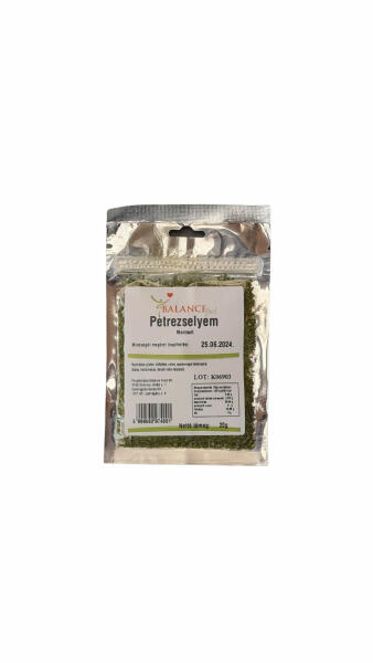 A petrezselyem a legnépszerűbb magyar zöldfűszer. A hús- és zöldséglevesek megkerülhetetlen hozzávalója. Gyakran használjuk húsok töltelékébe és tojásételekbe is, de zöldsalátát is megszórhatunk vele. Nettó tömeg: 20g Nyomokban glutént, dióféléket, zellert, szezámmagot tartalmazhat. Átlagos tápérték 100g termékben: Energiatartalom: 1221kJ/292 Kcal Zsír: 5,48g am