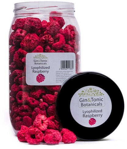 A liofilizált, más néven víztelenített málnaszemek összetéveszthetetlen krémes ízt adnak a gin tonicodnak. Mintha gyermekkorod málnaszörpjei élednének újjá a szádban.