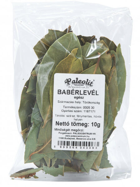 A babérlevél különleges és gazdag aromát ad ételeinknek. Legjellemzőbben levesek, főzelékek, sültek és savanyúságok fűszerezésére használják. BABÉRLEVÉL EGÉSZ 10G PALEOLIT Kutatások szerint a babérlevél a cukorbetegség és a mellrák ellen is tehet amellett, hogy különleges és gazdag aromát ad ételeinknek. A babér köptető, köhögéscsillapító, vírus-, gomba-