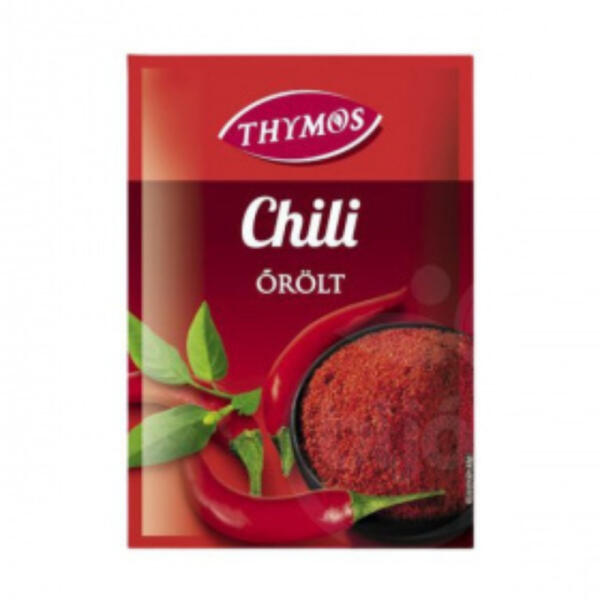 25 g-os őrölt chili; Thymos termék az egészséges élelmiszerek kedvelőinek. Összetétele: chili 100%" Őrölt chili, elengedhetetlen fűszer a csípős ételek készítéséhez. Az indiai és a kínai konyha kedvenc fűszere. Felhasználhatjuk saláták, húsok, tészták, pizzák, péksütemények, csokoládé valamint üdítő italok készítéséhez.