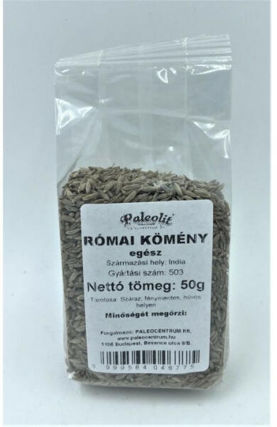 RÓMAI KÖMÉNYMAG EGÉSZ 50G PALEOLIT A rómaikömény erősen aromás, csípősen kesernyés termése fűszer, Indiai és közép-amerikai konyhában alapvető fontosságú fűszer. RÓMAI KÖMÉNYMAG EGÉSZ 50G PALEOLIT Az indiai és a közép-amerikai konyhában alapvető fontosságú fűszer, de több európai országban is elterjedtebb. A rómaikömény erősen aromás, csípősen kesernyés