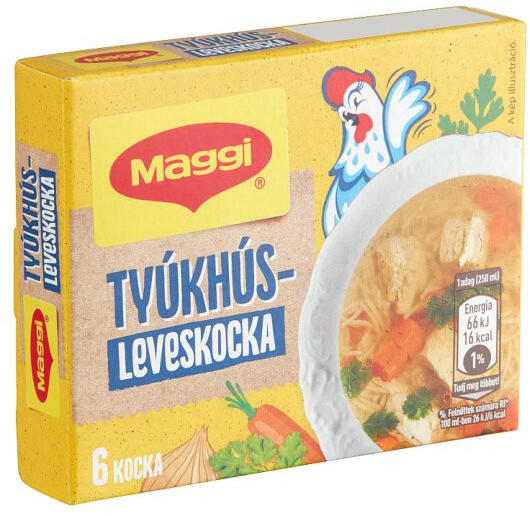 Termékleírás Termék információk A Maggi Tyúkhúsleveskocka szép arany színt és finom, telt ízt kölcsönöz a levesnek, a nagymama tyúkhúslevesét varázsolja az ebédlőasztalához. Elsősorban levesek, húsok, főzelékek és köretek készítéséhez ajánljuk. Minden Maggi termék szárított összetevőkből készül, ezzel biztosítjuk a termékek eltarthatóságát, és ennek k
