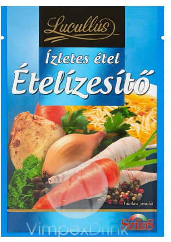 Termékleírás Márka információk Lucullus - Egy kis plusz Összetétel Étkezési só, Ízfokozó (nátrium-glutamát), Dextróz, Szárított zöldségek (sárgarépa, pasztinák, vöröshagyma, zellergumó , petrezselyem levél), Fűszerek, Színezék (riboflavin) Allergén összetevők Zeller, Mustár Tápértékre vonatkozó információk 100 g termékben energia 351 kJ/83 kcalzsír 0,3 g-