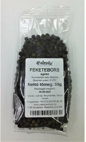 FEKETEBORS SZEMES 50G PALEOLIT Csípősségének köszönhetően alkalmas gulyások, pácok, húsok ízesítésére, a húsleves nélkülözhetetlen fűszere. Használható gyümölcsök, édességek ízesítésére is. FEKETEBORS SZEMES 50G PALEOLIT A fekete bors a trópusokon őshonos cserje, Az egyik legismertebb és legkeresettebb fűszer. A fekete borsot érés előtt szüretelik, mikor a fü