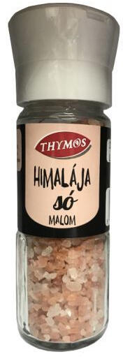 Himalája só darabos, csomagolás örlőfejes üvegben, utántölthető. 110 g-os utántölthető Himalája só malom; Thymos termék az egészséges élelmiszerek kedvelőinek.