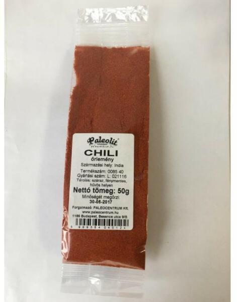 CHILI ŐRLEMÉNY 50G PALEOLIT elsősorban húsokhoz ajánljuk, de készíthetünk vele párolt zöldséget is. CHILI ŐRLEMÉNY 50G PALEOLIT Adalék-, színezék- és ízfokozó mentes örlemény. A chili a trópusokon termesztett csípős paprikafélék összefoglaló neve. A fűszeres ételek fogyasztása felgyorsítja az anyagcserét. A chili paprikában szereplő anyag, a kapszaicin váltja ki