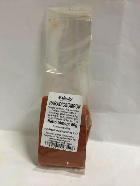 Természetes ételfestékként, színezékként használható. Intenzív paradicsom íz. PARADICSOMPOR 50G PALEOLIT Természetes ételfestékként, színezékként használható. Intenzív paradicsom íz. *A webáruházban közzétett információk és adatok tájékoztató jellegűek, a weboldal üzemeltetője mindent megtesz azok pontosságáért és teljeskörű voltáért, azonban azokért fel
